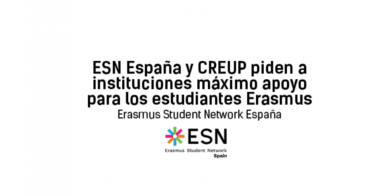 La crisis mundial provocada por el COVID-19 ha tenido graves repercusiones en los miles de estudiantes españoles que realizan estancias erasmus en el extranjero. Universidades e Instituciones han tenido que trabajar a contrarreloj las últimas semanas para dar la mayor cobertura posible al estudiantado afectado. Desde CREUP y ESN expresamos nuestro sincero agradecimiento y voluntad de colaboración.