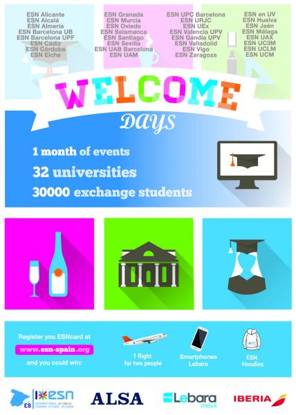 ESN España te da la bienvenida a tu periodo de intercambio en España y para que lo aproveches al máximo desde el principio, te invitamos a participar en el sorteo de nuestros WELCOME DAYS.
